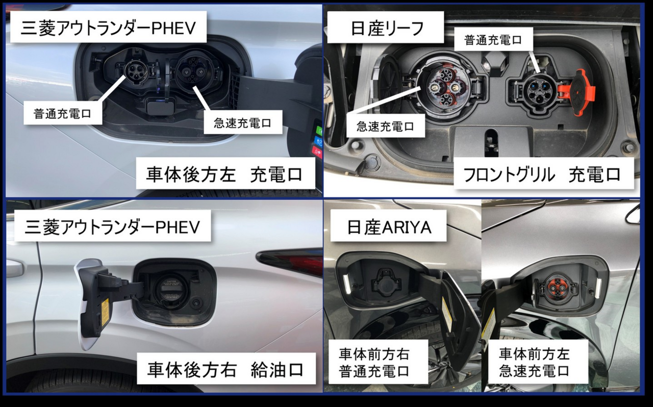 比較しやすいように車種ごとの充電口の一覧画像を用意しました。